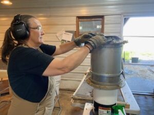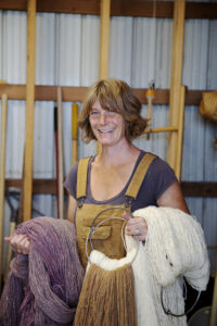 Persistent drought conditions in Minnesota forced the decision to reduce the size of their flock. Diving headfirst into fiber art production and agritourism allowed their farm to expand its available products while maintaining a sustainable presence on their land. When guests come to the farm they meet the sheep, visit the natural dye garden, walk in the pasture and see the on-site mill. Being at the farm allows guests to appreciate the cycle that produces both the meat for their meals and the textiles that clothe them.