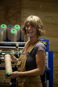 As the baroness of Get Bentz Farm, Theresa uses both wool from her flock and fleece purchased from shepherds throughout the region to create her signature products. “I love that I’ve become a producer of yarn in our industry,” smiles Theresa. “I enjoy having control over the end product. I get to collaborate with others to create something that