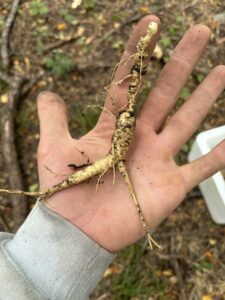 Roots are typically at least six years old before being dried and processed into powder, the most typical way that people use the prized root. The longer it grows, the stronger its potency. Ginseng plants thrive in shaded conditions, making them an ideal agroforestry crop. A drought resistant plant, dry summers make for steady growing conditions. Winters without snow cover, however, pose a challenge as turkeys and other critters dig up the plants.