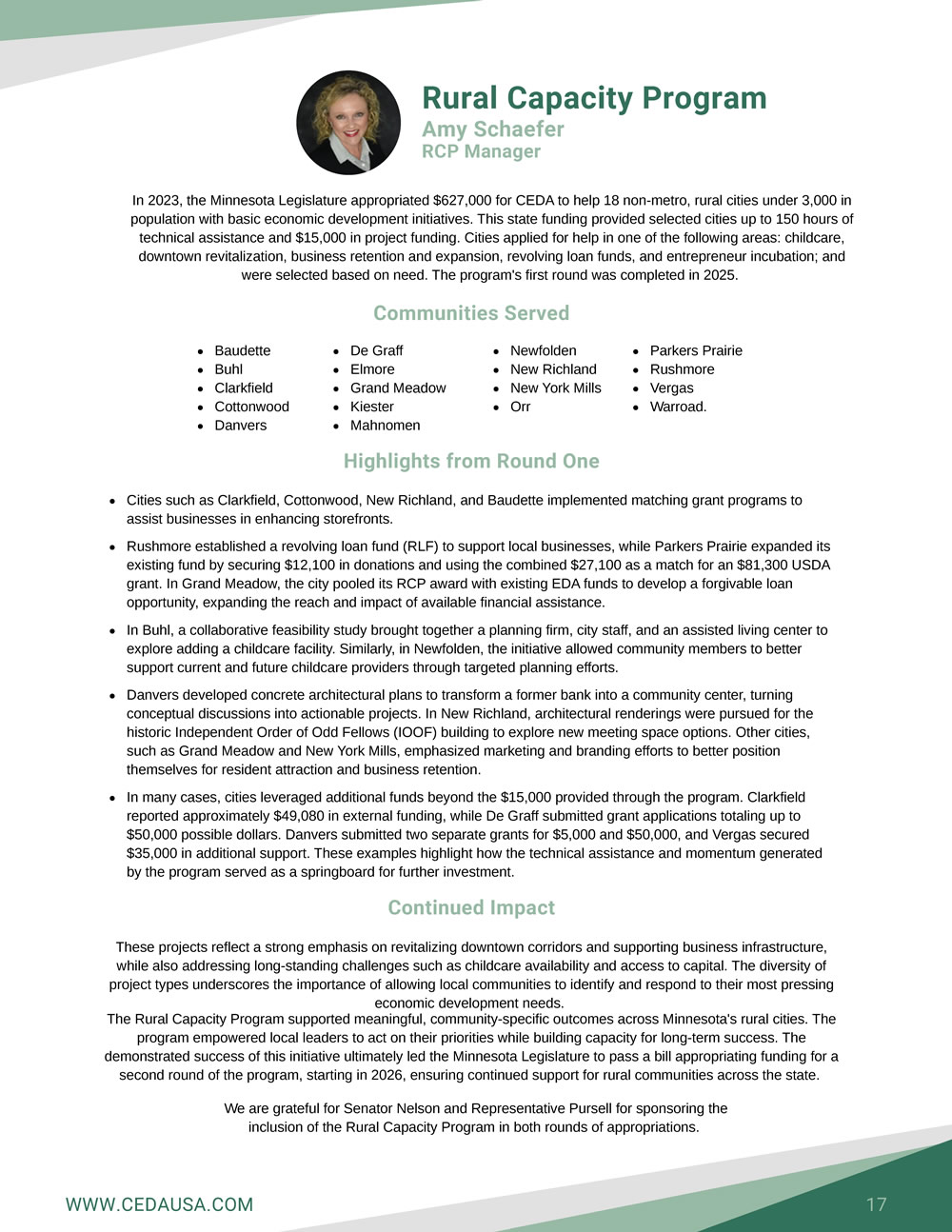MN Legislature Continues Support for CEDA Program, Rural Communities